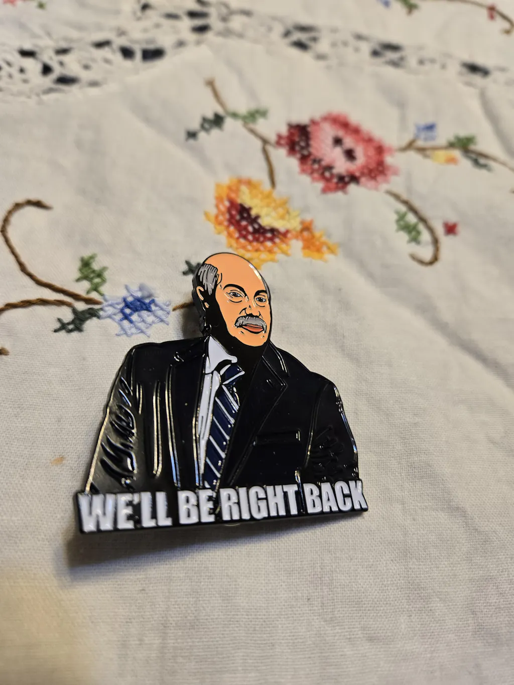 Show off your love for Adam Ray with this "We'll Be Right Back" enamel pin! Perfect for fans and collectors, this high-quality pin features a vibrant design and a secure butterfly clasp.